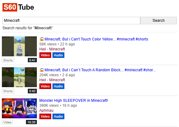 Chỉ cần vào link sau https://s60tube.io.vn/ trên trình duyệt gốc / Opera Mini, sau đó nhập nội dung tìm kiếm rồi bấm Search như ảnh: